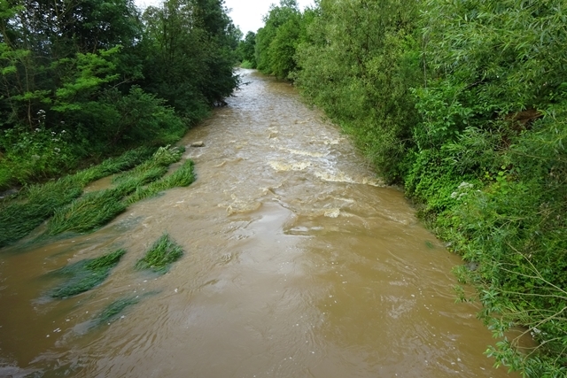 Die angeschwollenen Mank nach den heftigen Regenfällen der Nacht