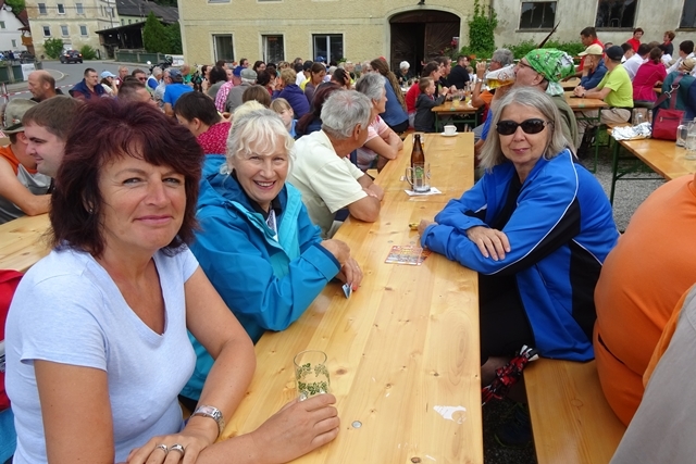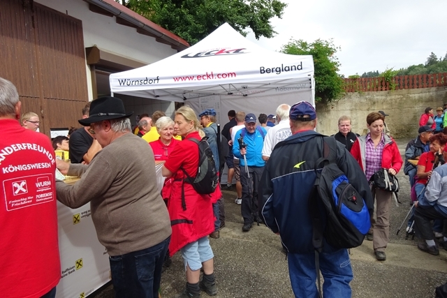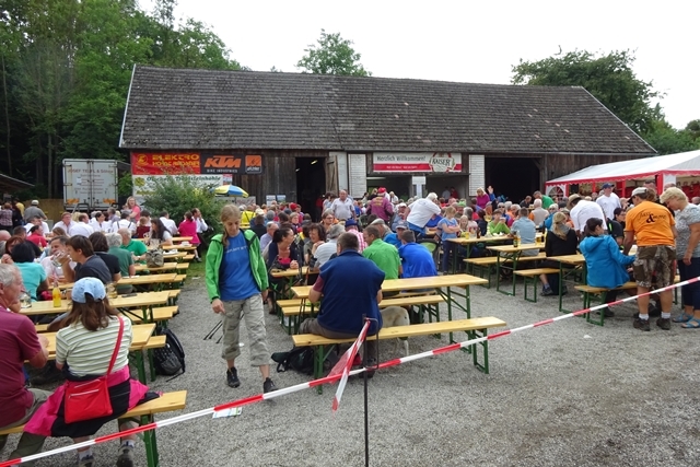 Die erste Labestelle nach wenigen Kilometern wurde eigentlich nur tangiert, da wegen der vielen Wanderer hier kaum noch ein Platz zu ergattern war.