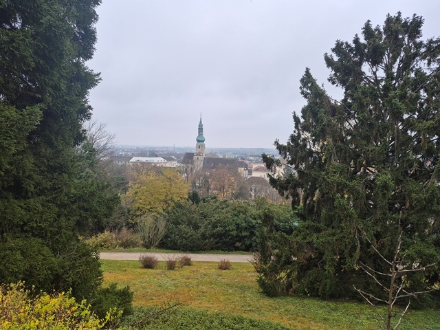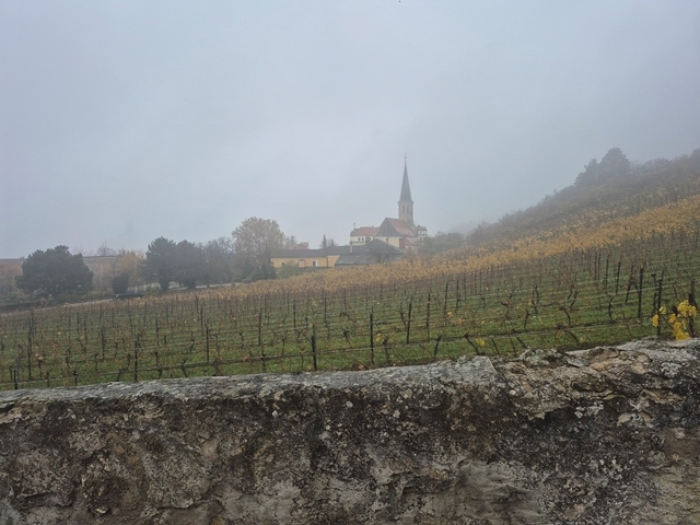Blick über Weingärten zur Michaelskirche von Gumpoldskirchen
