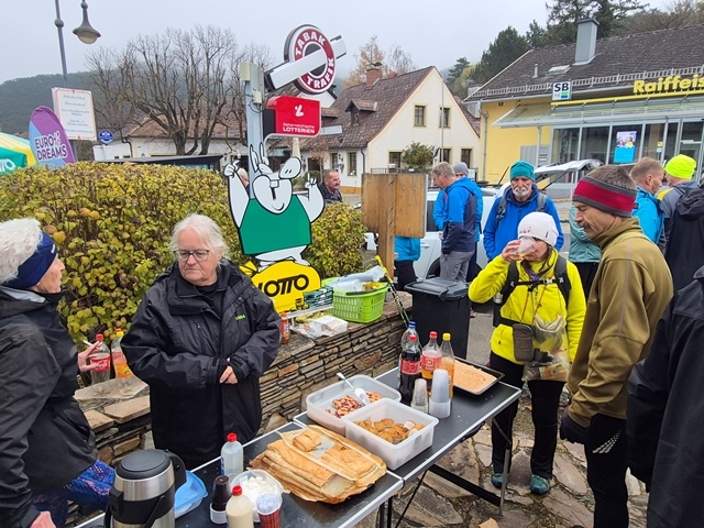 Stärkung beim Zusammenwarten vor dem Besuch von Peter Jaros