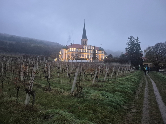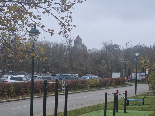 Vorbei am großen Parkplatz von Gumpoldskirchen