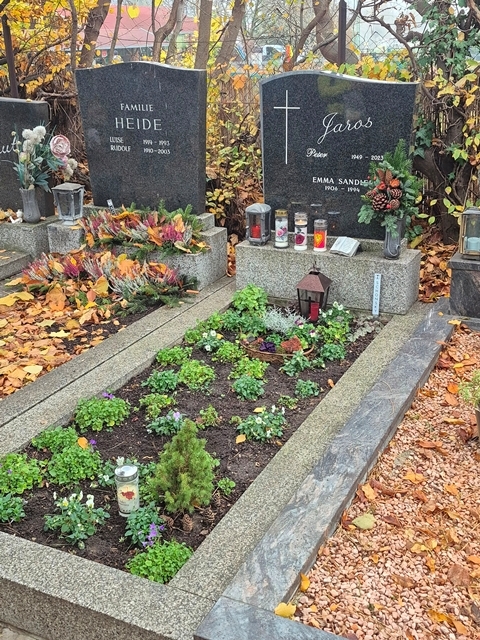 Besonders schön war es, dass mit Gattin Emmi Jaros, Christine und Reinhard Letal sowie dem amtierenden Obmann Bruno Wladecker einige Wanderer vom Wanderverein zum vereinbarten Treffpunkt kamen und mit uns gemeinsam die letzte Ruhestätte von Peter besuchten.