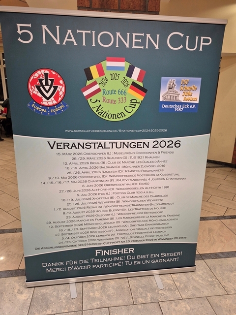 Die letzte Wochenend-Wanderfahrt der Wanderfreunde Traunstein-Salzkammergut führte die illustre Gruppe zur 5-Nationen-Cup-Veranstaltung der "Cercle Royal des Marcheurs de Saive" in der Gemeinde Blegny in der Region Wallonien gelegen in der Provinz Lüttich.