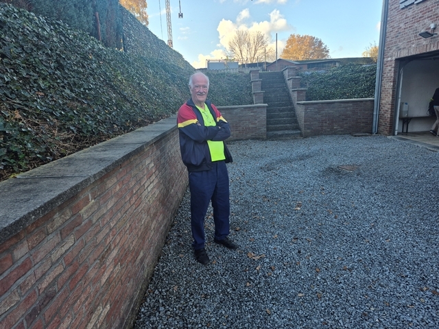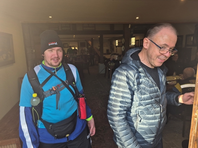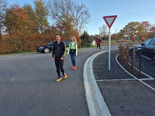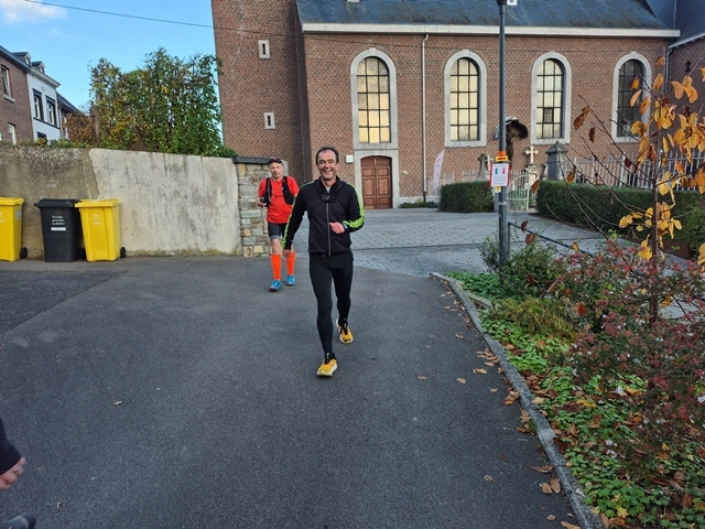 Serge - "Le Président" der Wanderfreunde Saive - weist die Marathonis persönlich ein