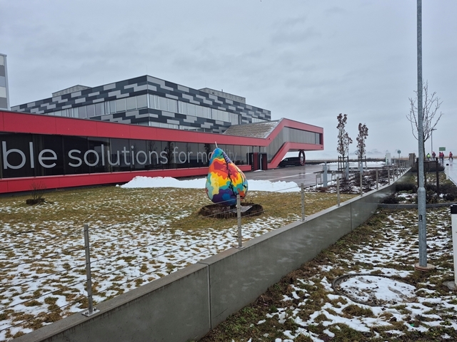 Schönes Firmengebäude mit bunter Birne
