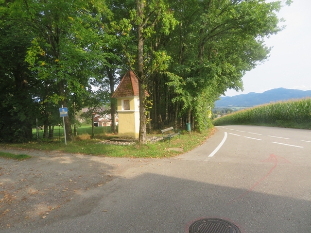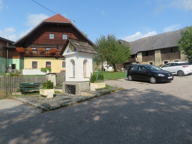 Schöner Bildstock mit Rastplatz an der Straße nach Obermühlbach