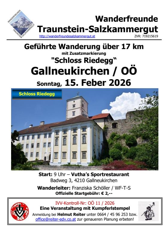 "Martini-Wanderung" Wanderfreunde Traunstein-Salzkammergut WL: Helmut Reiter 10 km geführt mit Zusatzmarkierung Start: 9 Uhr Wanderstein 4240 Freistadt |