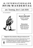 Wandergesellen Alt-Hürth 1991 e.V. 5 km + 10 km + 17 km + 23 km + 28 km + 32 km + 42 km + 50 km + 73 km (nur Samstag) sowie DIE Kulinarische KÖLSCH-Wanderung über 7 km + 12 km (eigener IVV-Stempel) Start: Pfarrheim St.Katharina Lindenstraße 7 50354 Hürth (Alt Hürth) Kleinbusfahrt Fr. 26.06. - Mo. 29.06.2026 |