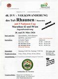 TuS1921 Rhaunen e.V Samstag, 28.03.2026: 50 km - Start von 6:30 - 8 Uhr 42 km - Start von 6:30 - 8:30 Uhr 20 km - Start von 7 - 11 Uhr 6 km + 10 km - Start von 7 - 14 Uhr Zielschluss: 18 Uhr Sonntag, 29.03.2026: 42 km - Start von 6:30 - 8:30 Uhr 20 km - Start von 7 - 11 Uhr 6 km + 10 km - Start von 7 - 14 Uhr Zielschluss: 17 Uhr Startort: Idarwaldhalle Am Sonnenschlicher 5 55624 Rhaunen |