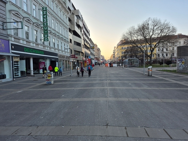 Über die um 7 Uhr noch halbwegs leere Fußgängerzone